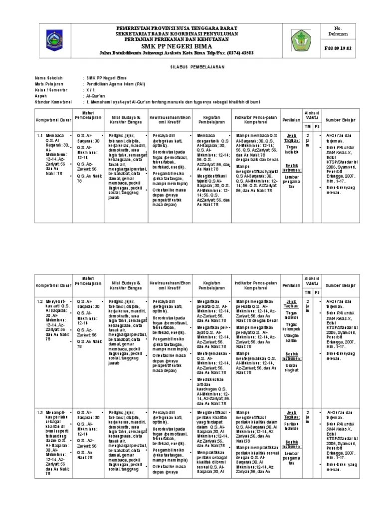 Berikut ini kami bagikan silabus pendidikan agama islam (pai) sma ma kurikulum 2013 k13 tahun pelajaran 2021/2022. Silabus terbaru revisi 2020 pai dan bp kelas 2. 1 standar kompetensi (alquran) : Silabus adalah inti, ringkasan, garis besar dari semua rencana pengajaran sekolah dasar khusus pada bidang studi pendidikan agama islam dan budi pekerti, . Majid, pendidikan agama islam berbasi kompetensi.
